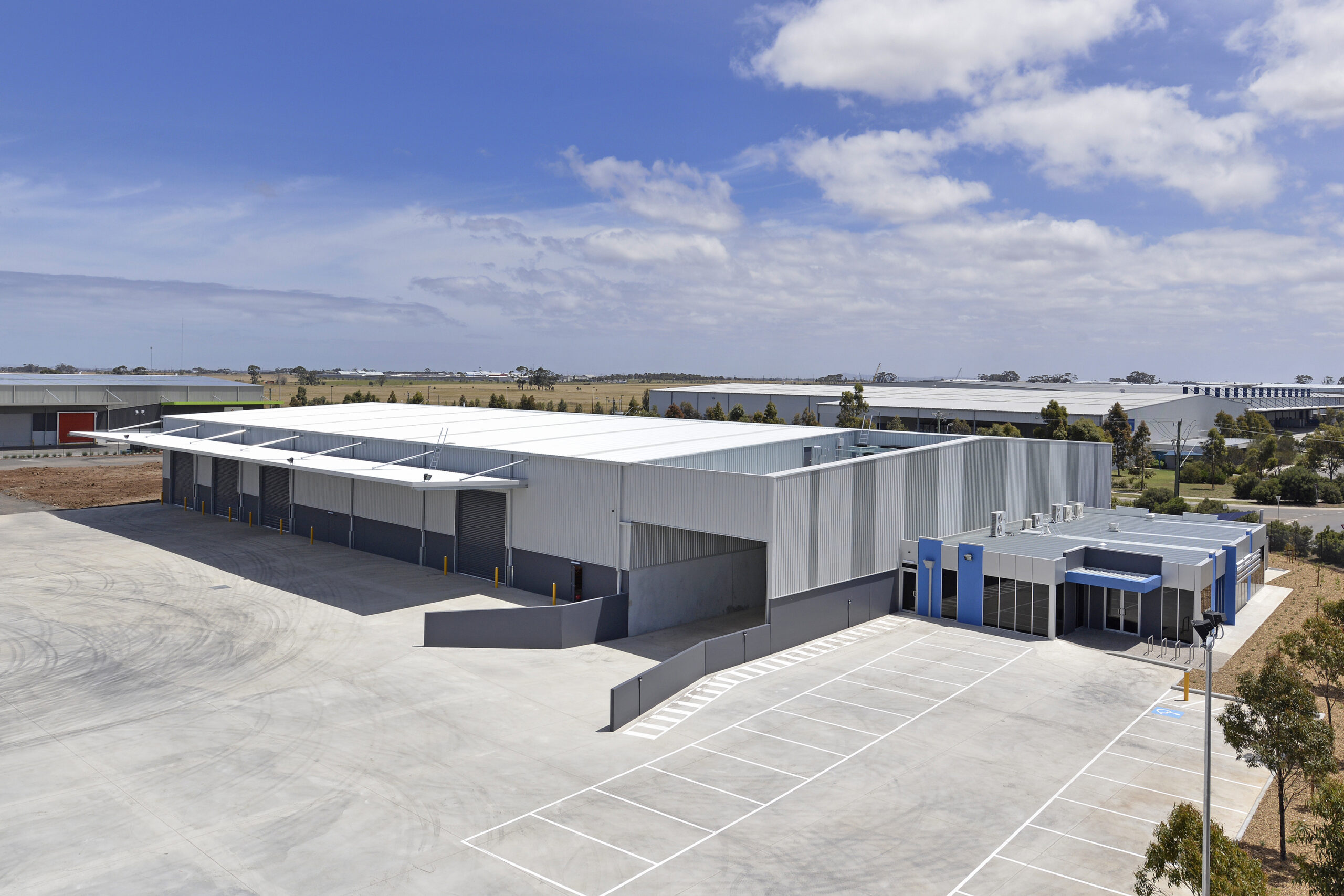 Texco celebrates 5 years since completion of Sargeant Transports Truganina development. Delivered in 2013 the facility was designed with logistical functionality in mind with the project featuring 3,200m2 of warehouse, workshop, cold storage and office space along with expansive external hardstands and a drive-through truck wash.